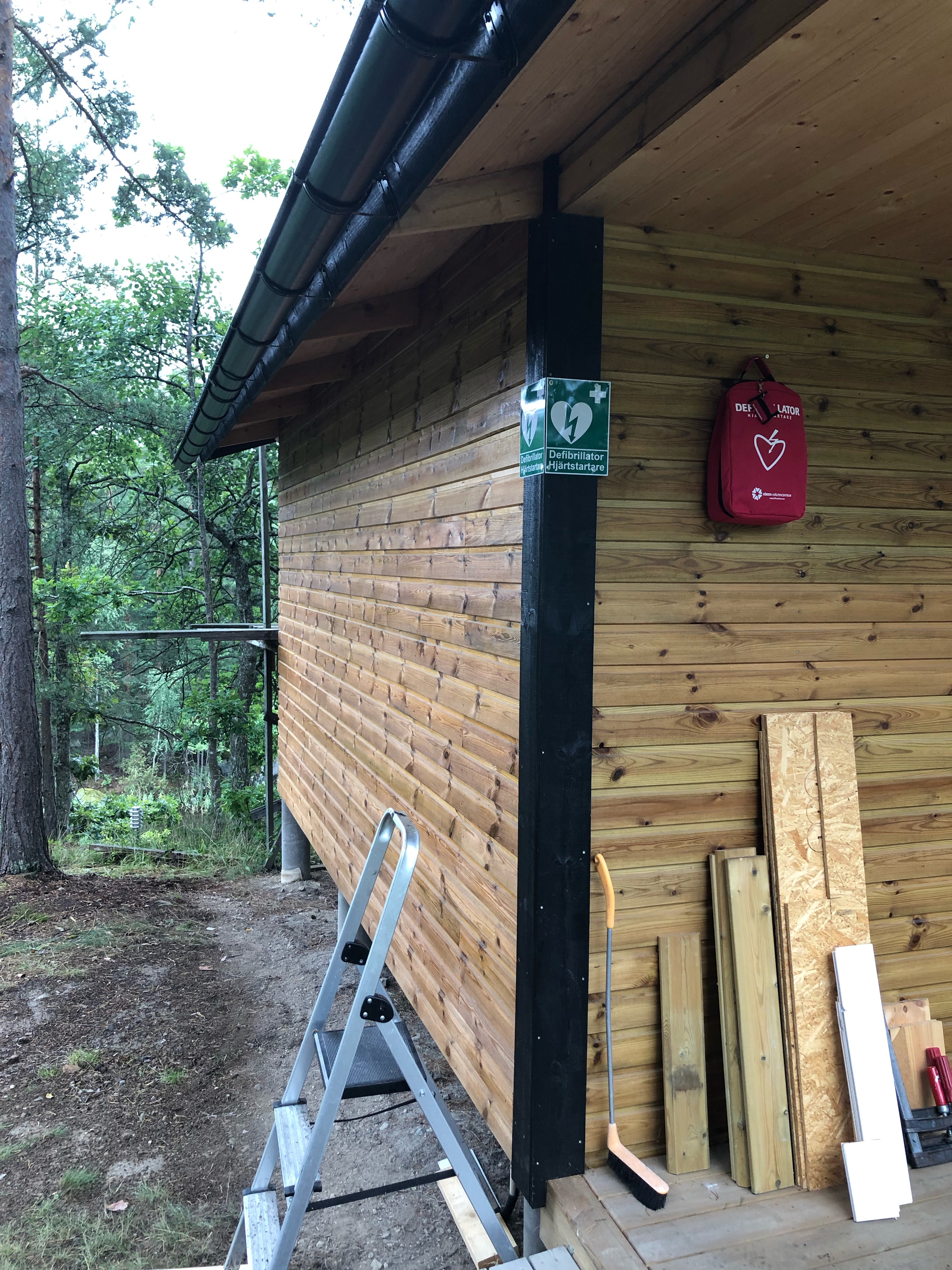 En hjärtstartare är nu uppmonterad hos familjen Lindholm på tomt 45. Den sitter placerad under altantaket på det lilla huset som är närmast sjön. Hjärtstartaren kan lätt nås från sjövägen och från vår ö. Kom gärna upp och se var den sitter så att ni känner er trygga med hur ni kan hämta den om det skulle uppstå skarpt läge.