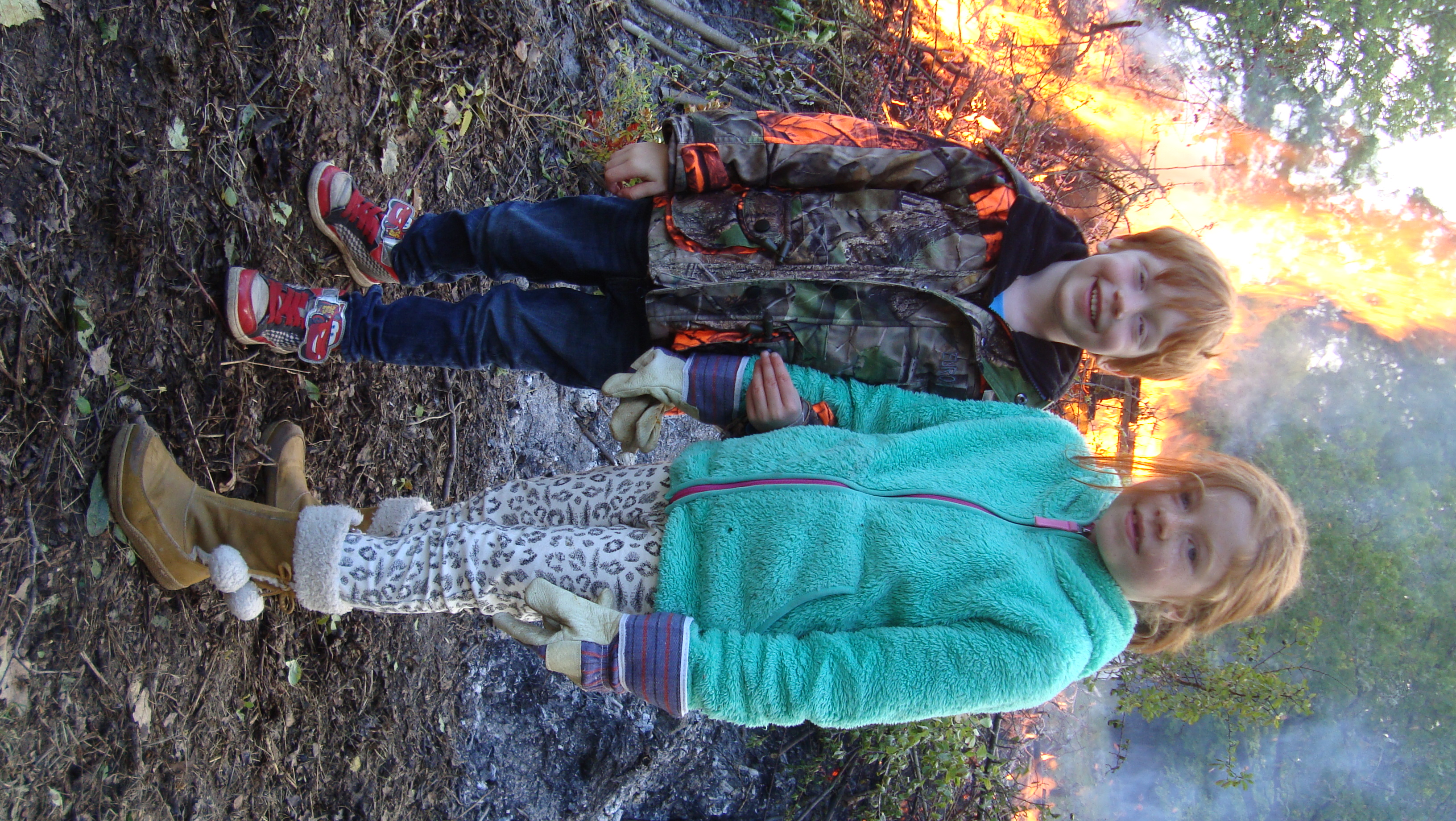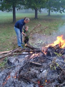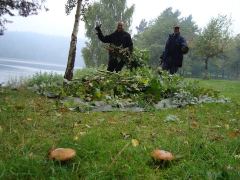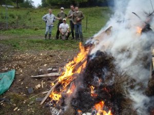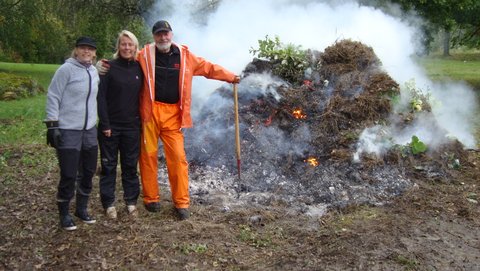 Högar med gräs och kvistar mm finns upplagt på eldningsplatserna och